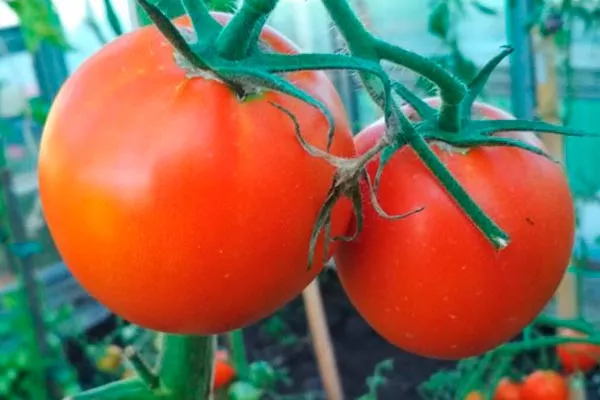 - У помидоров округло-приплюснутая форма, крупные размеры, слегка ребристая поверхность, желтоватые разводы у плодоножки и шероховатость у донца.