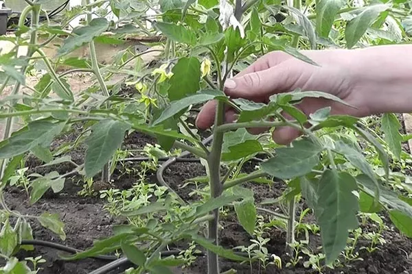 - Обрезка нижних листьев до уровня первой плодоносящей кисти.