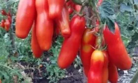 Томаты формируются и созревают в простых кистях, обычно по 5-7 штук в каждой. Благодаря детерминантному типу роста и среднерослости куста, такие грозди хорошо проветриваются и равномерно освещаются солнцем, что способствует дружной отдаче урожая. Плодоножка имеет сочленение, поэтому сбор созревших томатов не составляет труда.