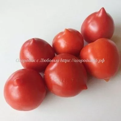 Главная отличительная черта сорта — плоды. Их форма не просто округлая, а имеет обязательный изящный носик на вершине, что делает их легко узнаваемыми. Масса плодов, согласно характеристикам, варьируется в довольно широком диапазоне от 40 до 90 граммов. Такой разброс часто наблюдается в зависимости от порядка завязи в кисти и условий агротехники: первые, нижние плоды обычно крупнее.