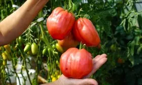 Мякоть у этих томатов плотная, мясистая и при этом достаточно сочная. Внутри немного семенных камер и мало семян. Кожица прочная, но не жесткая, она эффективно защищает плод от растрескивания.