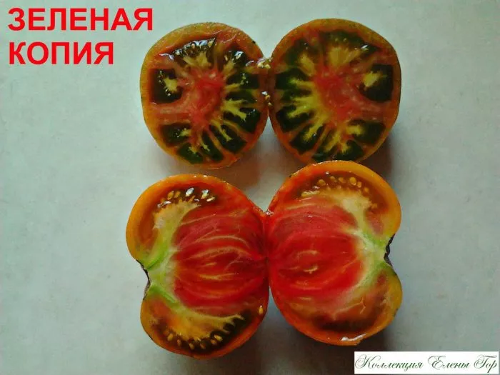 Этот сорт относится к категории так называемых «би-колор» (двухцветных) томатов, чья история часто бывает неформальной и увлекательной. В отличие от многих современных гибридов, созданных в научных институтах, Зеленая копия — это плод работы энтузиастов-коллекционеров, сохраняющих генетическое разнообразие.