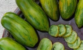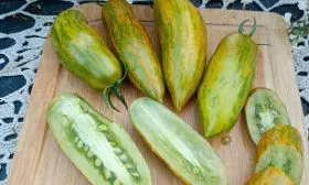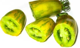 Нестандартная окраска спелого плода — изумрудная с желтыми полосками — не является признаком незрелости. Это важно учитывать, чтобы не передержать урожай на кусте или в ящике для дозаривания.