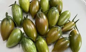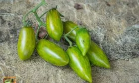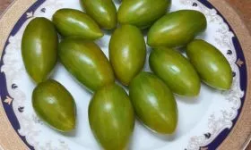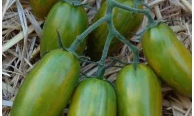 Форма плодов соответствует заявленной удлиненной, часто со слегка заостренным кончиком, напоминая миниатюрные сливки или перчики. Средняя масса плода составляет 20-30 граммов, что делает их идеальным размером для цельноплодного консервирования. Мякоть сочная, изумрудного оттенка, с очень сладким вкусом, что нетипично для многих зеленоплодных томатов, часто имеющих пряные или травянистые нотки.
