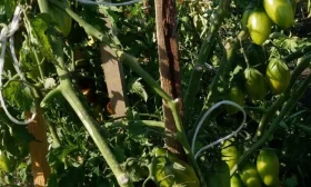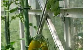 - Установите опору до или во время высадки рассады. Используйте шпалеру или колья высотой не менее 1.8-2 метров. Подвязывайте стебель по мере роста мягкими материалами. Поздняя установка опоры повредит разросшуюся корневую систему, а мощный куст с урожаем легко полегает.