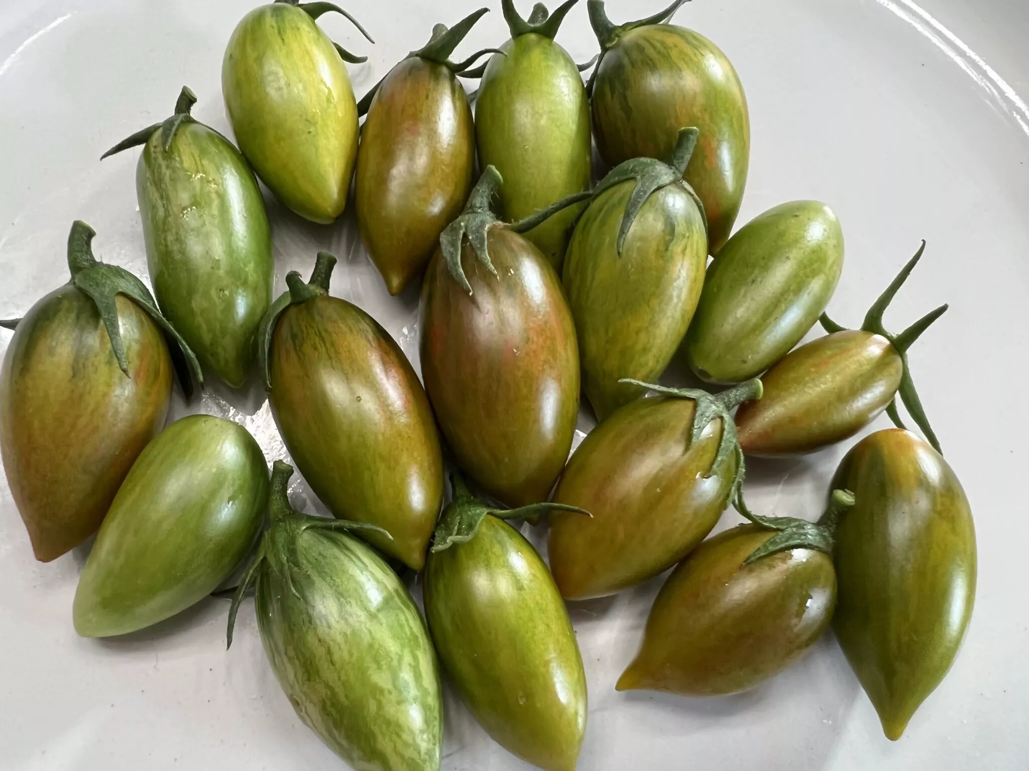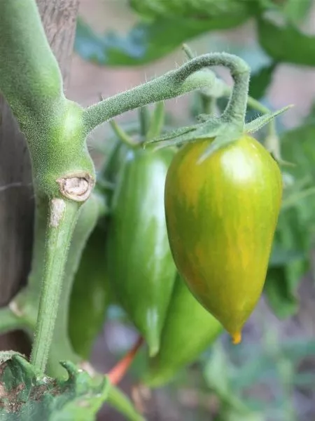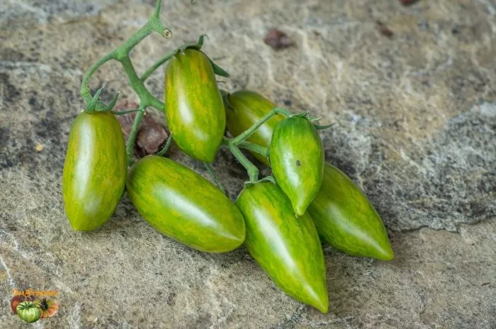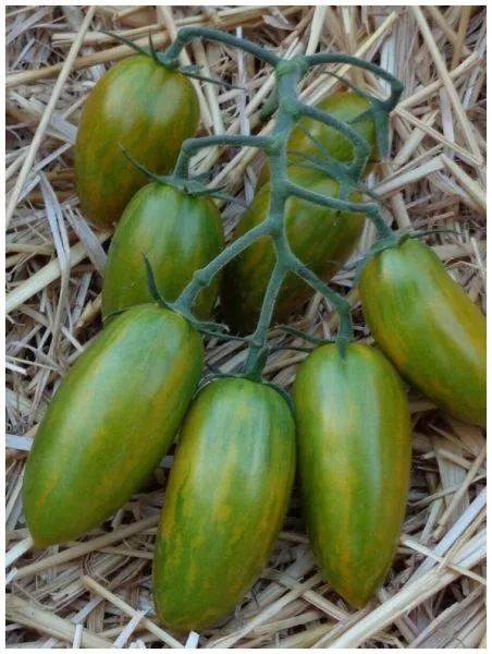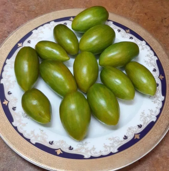 Форма плодов соответствует заявленной удлиненной, часто со слегка заостренным кончиком, напоминая миниатюрные сливки или перчики. Средняя масса плода составляет 20-30 граммов, что делает их идеальным размером для цельноплодного консервирования. Мякоть сочная, изумрудного оттенка, с очень сладким вкусом, что нетипично для многих зеленоплодных томатов, часто имеющих пряные или травянистые нотки.