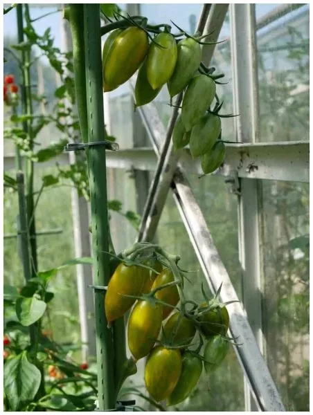 | Цвет зрелого плода | На зеленом фоне темно-зеленые полоски | Основная особенность сорта. Плоды в биологической спелости остаются зелеными, что требует от садовода умения определять зрелость не по цвету, а по мягкости и легкости отрыва от кисти. |