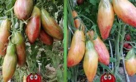 Урожайность сорта формируется за счет длительного периода плодоношения, характерного для высокорослых индетерминантных томатов. Кисти закладываются последовательно по мере роста стебля. Плоды в рамках одного сорта могут демонстрировать удивительное разнообразие: от удлиненных, слегка изогнутых, напоминающих банан, до более упитанных и округлых, похожих на крупные сливы.