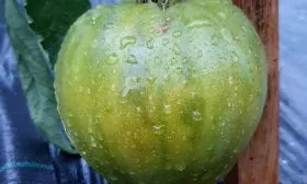 Нестандартный окрас — зеленый с розовым румянцем — является главным маркером спелости. В состоянии технической спелости плод имеет равномерную зеленую окраску, и момент полного созревания легко пропустить.