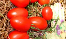 Плоды имеют узнаваемую сливовидную, или овально-удлиненную, форму с четко выраженным носиком. Их масса составляет 66-89 граммов, что является оптимальным размером для цельноплодного консервирования. Помидоры в кисти созревают выровненными, что упрощает сбор.