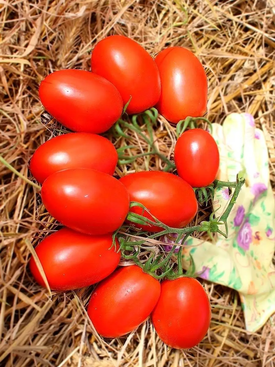 Плоды имеют узнаваемую сливовидную, или овально-удлиненную, форму с четко выраженным носиком. Их масса составляет 66-89 граммов, что является оптимальным размером для цельноплодного консервирования. Помидоры в кисти созревают выровненными, что упрощает сбор.