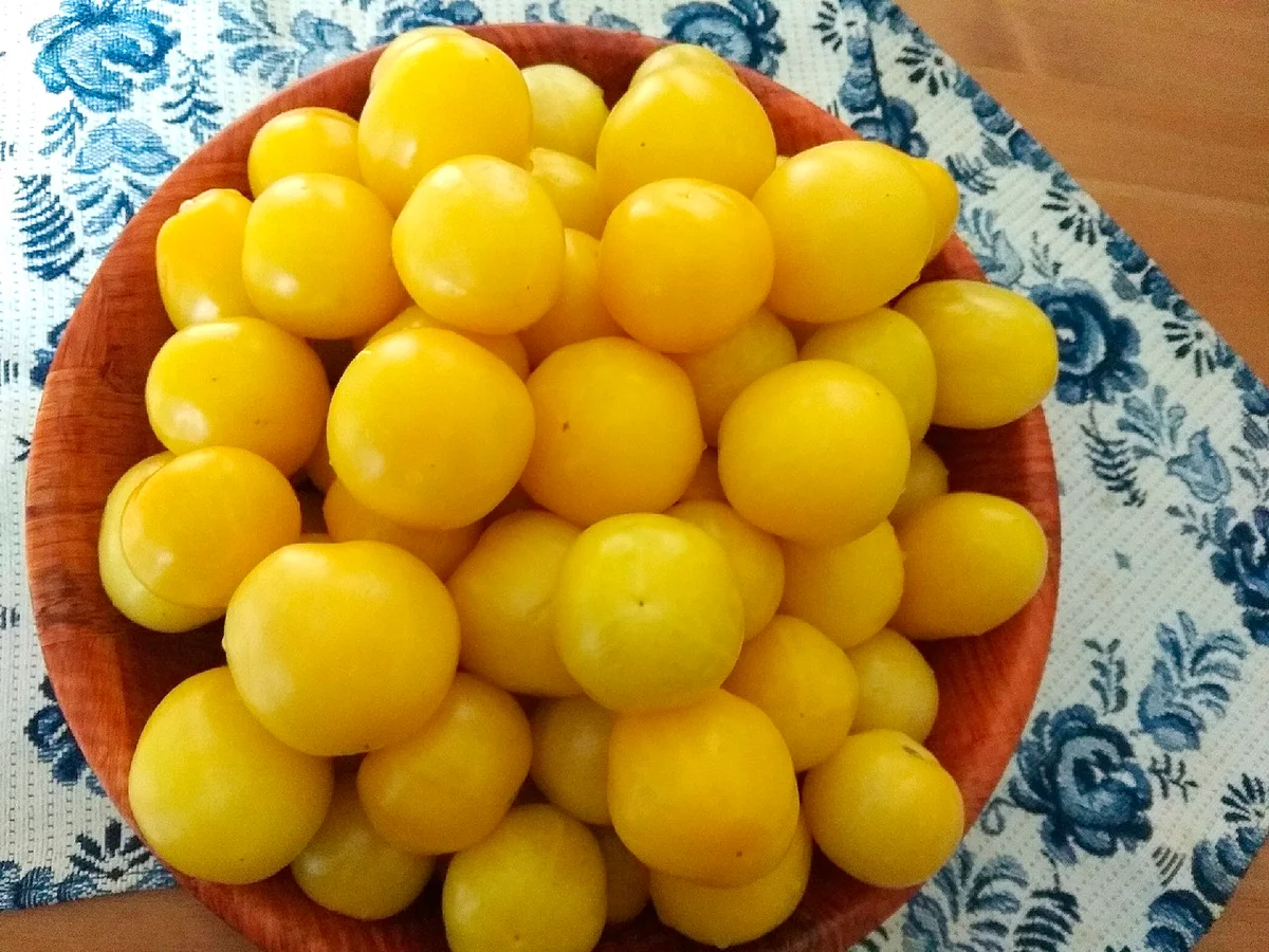 Вкус, напоминающий персик, обусловлен гармоничным балансом сахаров и кислот, а также особым ароматом. Такие плоды отлично подходят для свежего потребления, украшения блюд и цельноплодной консервации, где они сохраняют свою форму и необычный цвет.