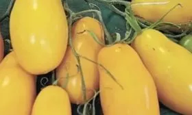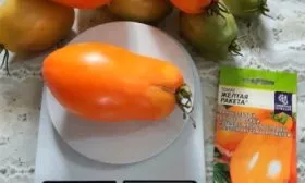 Плоды имеют идеально цилиндрическую, удлиненную форму, часто с выраженным носиком на вершине, что полностью оправдывает название сорта. Важная отличительная черта — отсутствие зеленого пятна у плодоножки в фазе технической спелости. Помидоры равномерно окрашиваются из светло-зеленых в яркий солнечно-желтый цвет.