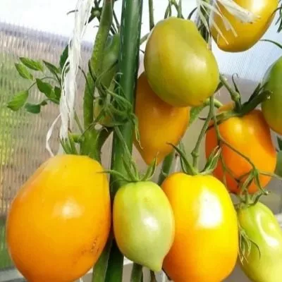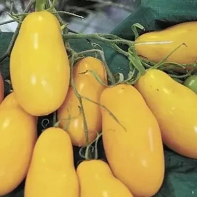 Плоды имеют идеально цилиндрическую, удлиненную форму, часто с выраженным носиком на вершине, что полностью оправдывает название сорта. Важная отличительная черта — отсутствие зеленого пятна у плодоножки в фазе технической спелости. Помидоры равномерно окрашиваются из светло-зеленых в яркий солнечно-желтый цвет.