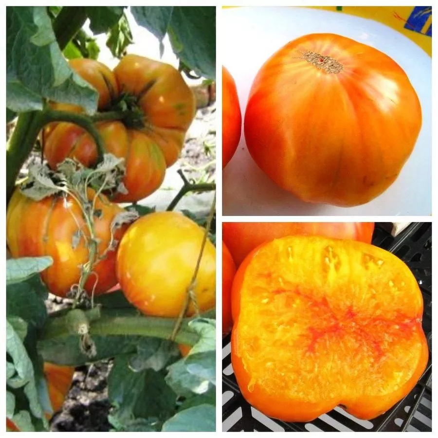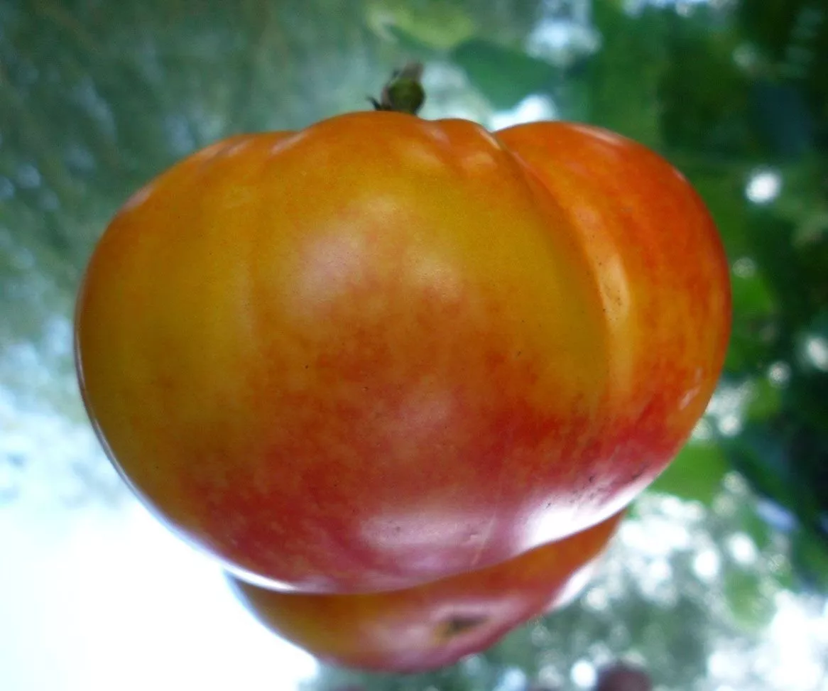 Главная гордость сорта — его плоды. Их форма классифицируется как «бифштекс» (beefsteak). Это означает, что помидоры сильно приплюснуты сверху и снизу, а по бокам имеют ярко выраженную, часто глубокую ребристость. Такая форма не только эффектна, но и указывает на многокамерное строение плода.