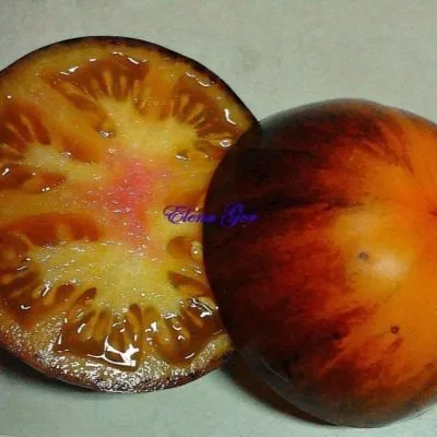 По мере созревания основной фон меняется на теплый оранжево-желтый. Антоциановое пятно при этом не исчезает, а «растекается» по поверхности, образуя причудливые фиолетовые точки, штрихи и полосы. Интенсивность и рисунок этого мраморного узора непредсказуемы и зависят от освещенности и температуры, поэтому два плода с одного куста редко бывают полностью одинаковыми.