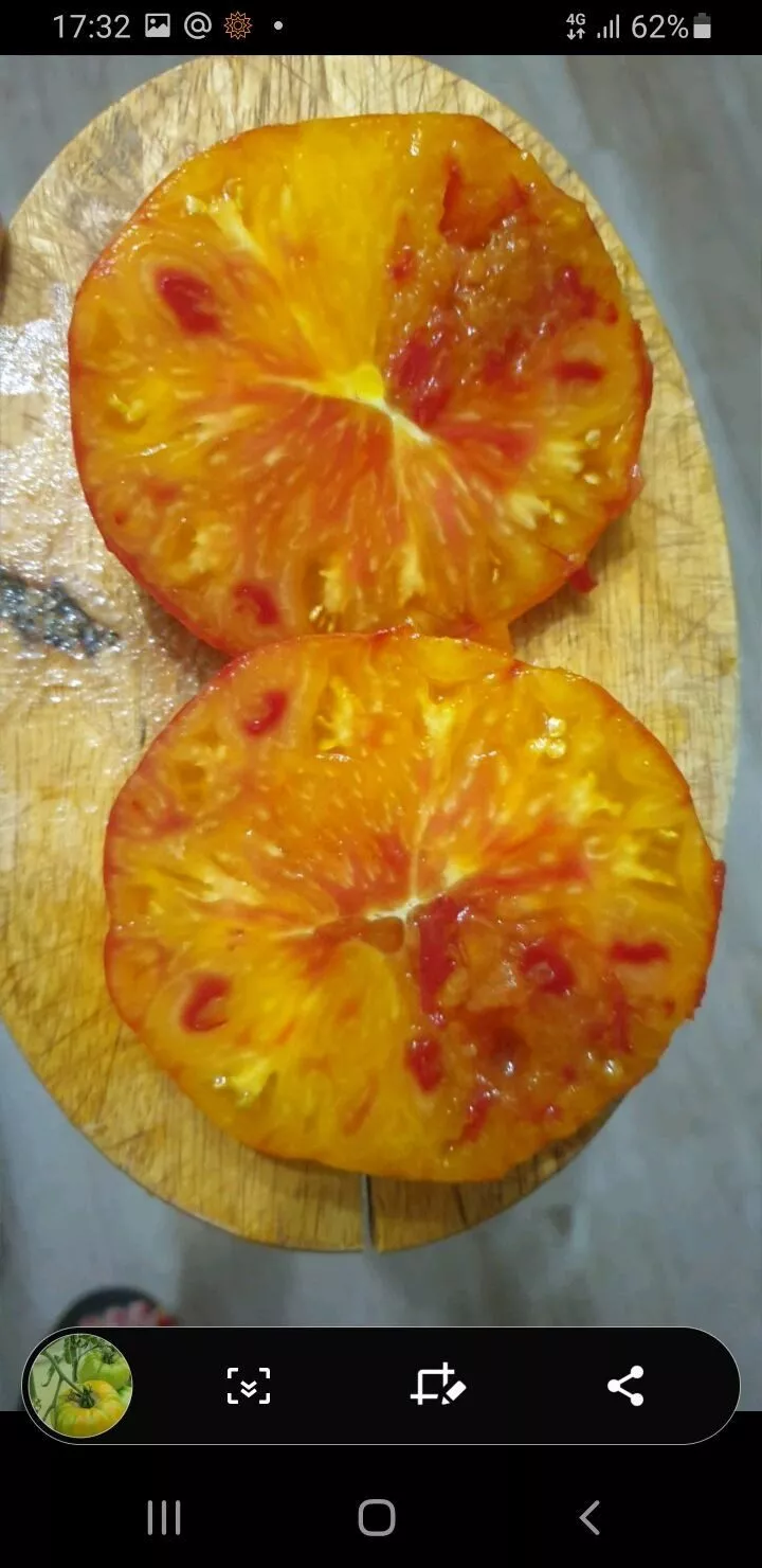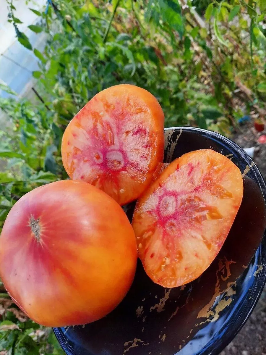 Присутствие красных прожилок свидетельствует о наличии ликопина, другого мощного антиоксиданта, характерного для красноплодных томатов. Таким образом, сорт может предлагать комбинацию полезных пигментов: бета-каротина в основной массе мякоти и ликопина в ее окрашенных частях.