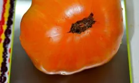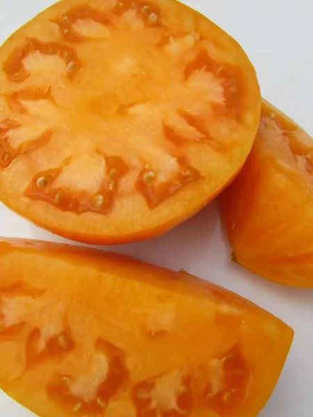 Плодоножка у томатов Жемчужина Джанет имеет особенность, известную как «зеленое плечо». Это означает, что область вокруг плодоножки может оставаться зеленоватой даже при полной зрелости остальной части плода. Не стоит ждать, пока это «плечо» полностью окрасится – плод можно снимать, когда основная часть достигла характерного оранжевого цвета с полосками, а у плодоножки появился легкий желтоватый оттенок.