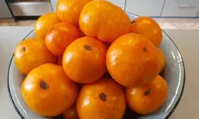 Среднеспелый срок созревания означает, что в регионах с коротким летом часть урожая может не успеть вызреть на кусту. Снимите бурые плоды и дозаривайте их в помещении. Плоды оранжевого цвета с полосками в процессе дозаривания успешно набирают свой окончательный окрас и вкус.