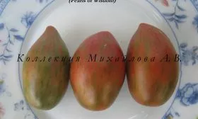 Главная отличительная черта сорта — стабильная контрастная окраска. В состоянии полной биологической зрелости томаты приобретают насыщенный темно-красный фон, по которому проходят продольные зеленые или темно-зеленые полосы, часто наиболее яркие у плодоножки.