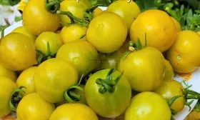 Основное назначение сорта — употребление в свежем виде, и здесь он раскрывается максимально полно. Небольшие, округлые плоды идеально подходят для фуршетных шпажек, канапе и детских тарелок. Их необычный горчично-желтый цвет с зеленоватым отливом создает эффектные цветовые акценты в салатах, на сырных тарелках и при украшении основных блюд, заменяя традиционные красные черри.