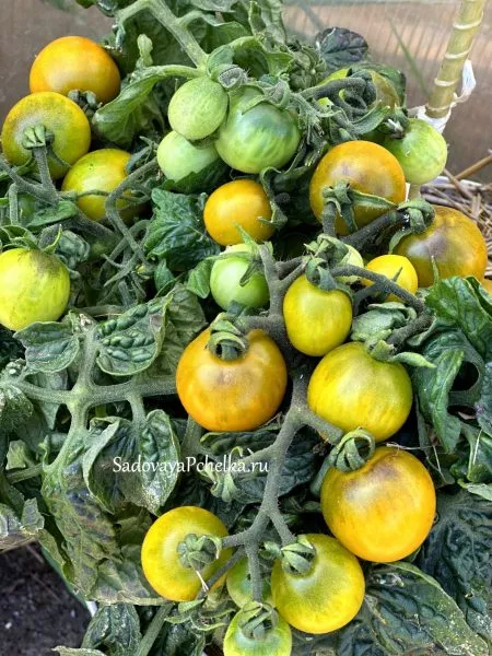 Сбор рекомендуется проводить в стадии полной биологической спелости. Именно тогда плоды набирают максимальную сахаристость и полностью проявляют свой уникальный окрас — горчично-желтый с неоново-зеленым отливом. Созревшие томаты легко отделяются от плодоножки без усилий.