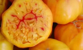 Внутренняя структура плода напрямую связана с его назначением для переработки. Мякоть исключительно плотная, сахаристая и мясистая, с высоким содержанием сухих веществ. Семенных камер мало, они небольшие по размеру, а семян содержится минимальное количество. Такая «сухая» консистенция идеальна для приготовления густых соусов, пасты или кетчупа без длительного уваривания.