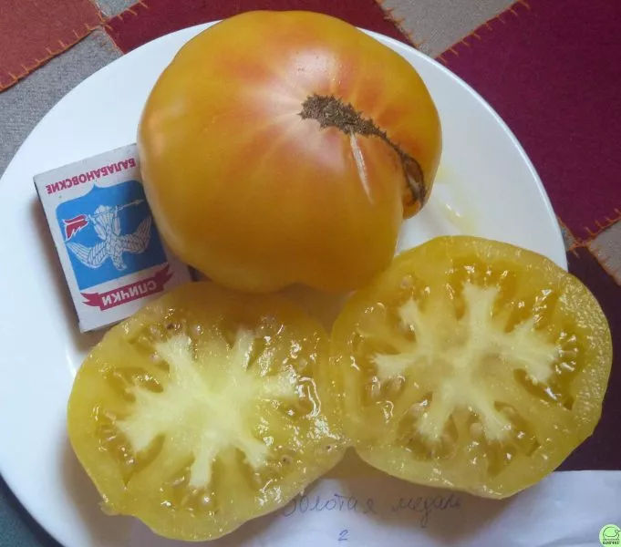 Размер плодов, как часто бывает у индетерминантных сортов, неравномерен по ярусам. На первых двух кистях томаты наиболее крупные, достигая заявленных 400-500 граммов. На последующих кистях масса плодов обычно снижается до 200-300 граммов, что не влияет на интенсивность их окраски и вкусовые качества.