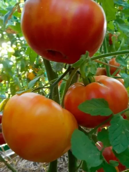 Итогом работы стал индетерминантный томат, который совмещает высокорослость (до 180 см), крупноплодность (200-350 г) и главную «фишку» — экзотическую, нечеткую полосатую окраску. Это удачный пример того, как селекция может объединить декоративность с полноценной садовой продуктивностью.