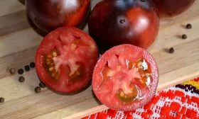 Для полного раскрытия уникального вкуса и окраса плоды предпочтительно снимать в стадии полной биологической спелости. Готовый к уборке томат имеет равномерный насыщенный пурпурный цвет с характерными полосками и антоциановой «шапочкой» у плодоножки. Мякоть в этот момент приобретает свойственный сорту сладко-терпкий вкусовой профиль.