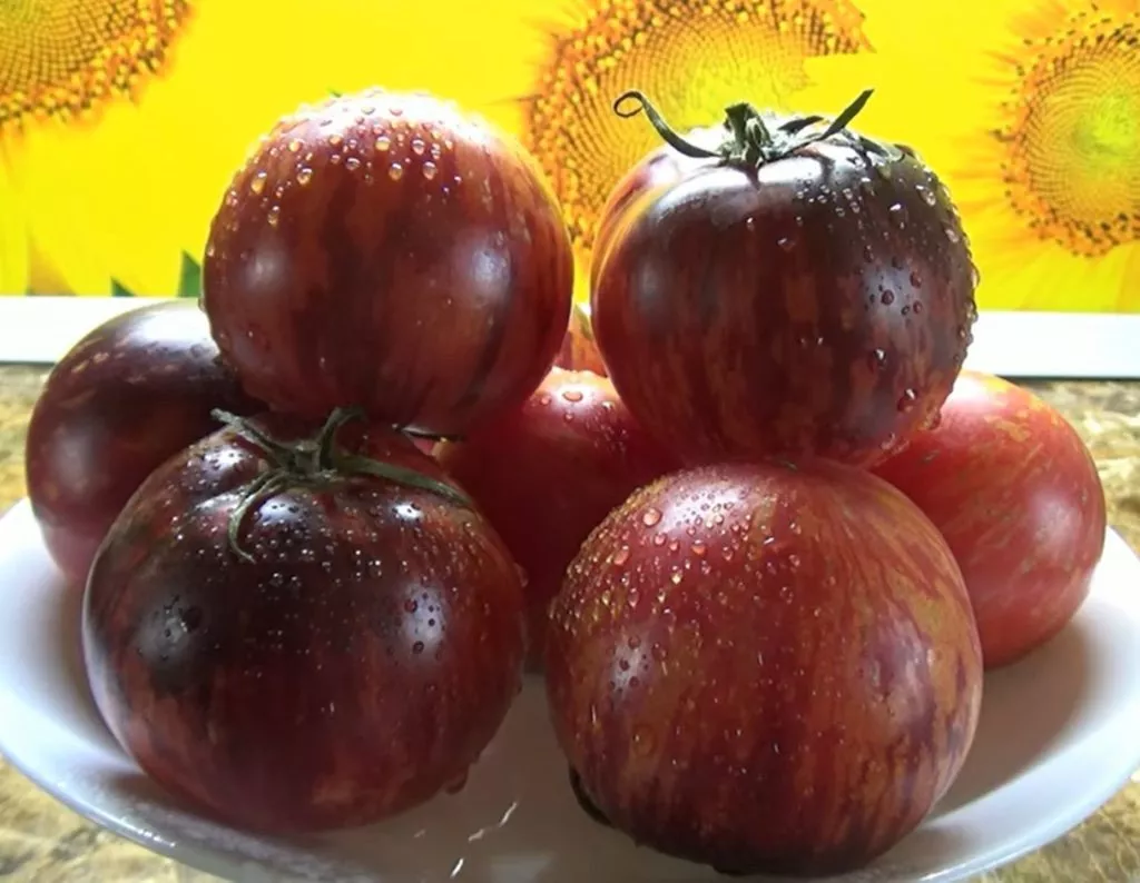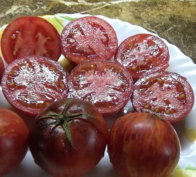 Для полного раскрытия уникального вкуса и окраса плоды предпочтительно снимать в стадии полной биологической спелости. Готовый к уборке томат имеет равномерный насыщенный пурпурный цвет с характерными полосками и антоциановой «шапочкой» у плодоножки. Мякоть в этот момент приобретает свойственный сорту сладко-терпкий вкусовой профиль.