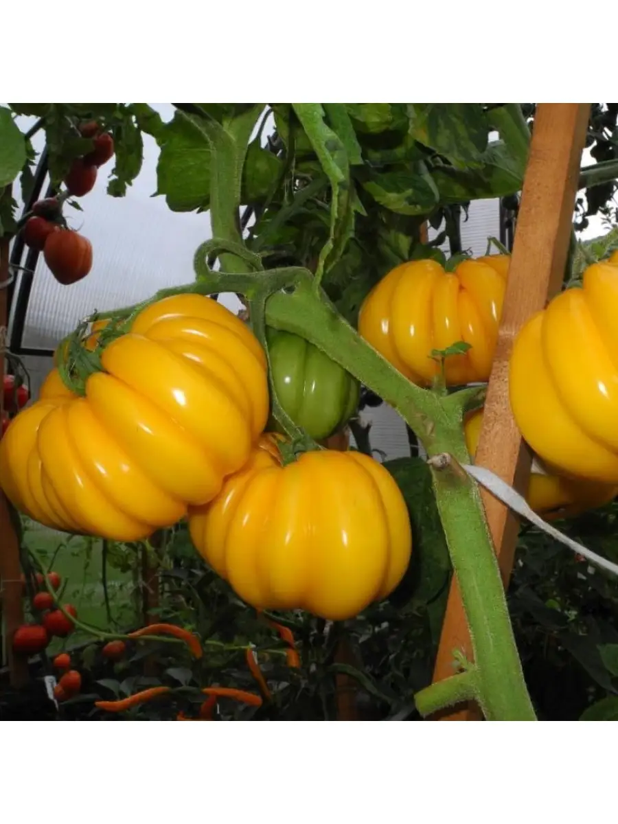 | Высота куста | 180-200 см | Нужна теплица с высоким потолком, а также шпалера или длинные колья для подвязки. |