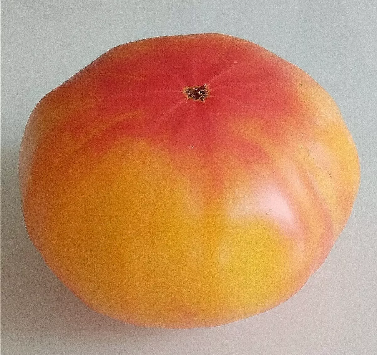 Окраска «на оранжевом фоне малиновые разливы, идущие от макушки» — не просто красивая формулировка, а точное описание. Плоды в технической спелости имеют зеленое пятно у плодоножки, которое по мере созревания исчезает, превращаясь в малиновый «румянец» на золотисто-оранжевом основном фоне. Интенсивность этого разлива зависит от освещенности и может варьироваться.