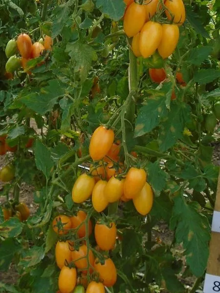 Внешний вид этого томата — его визитная карточка, выделяющая среди множества других желтых сортов. Куст высокорослый, мощный, с длинными междоузлиями и характерной для индетерминантных растений силой роста. Листва стандартного типа, не слишком густая, что способствует хорошему проветриванию и снижает риск развития грибковых заболеваний.
