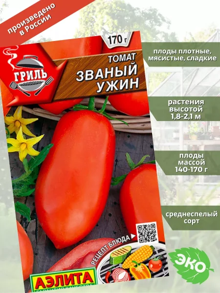 Отсутствие маркировки F1 в названии — ключевая особенность, отличающая его от многих современных промышленных сортов. Это означает, что Званный ужин относится к категории сортовых (негибридных) томатов. Данный факт имеет прямое практическое значение для огородника: семена из созревших плодов полностью сохранят сортовые характеристики растения в следующем сезоне.