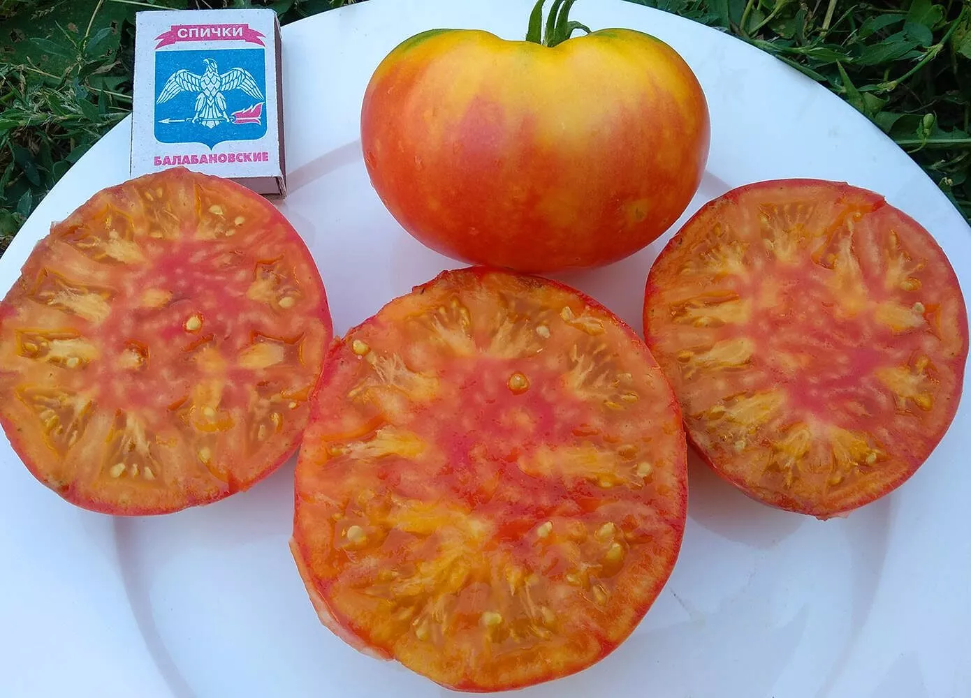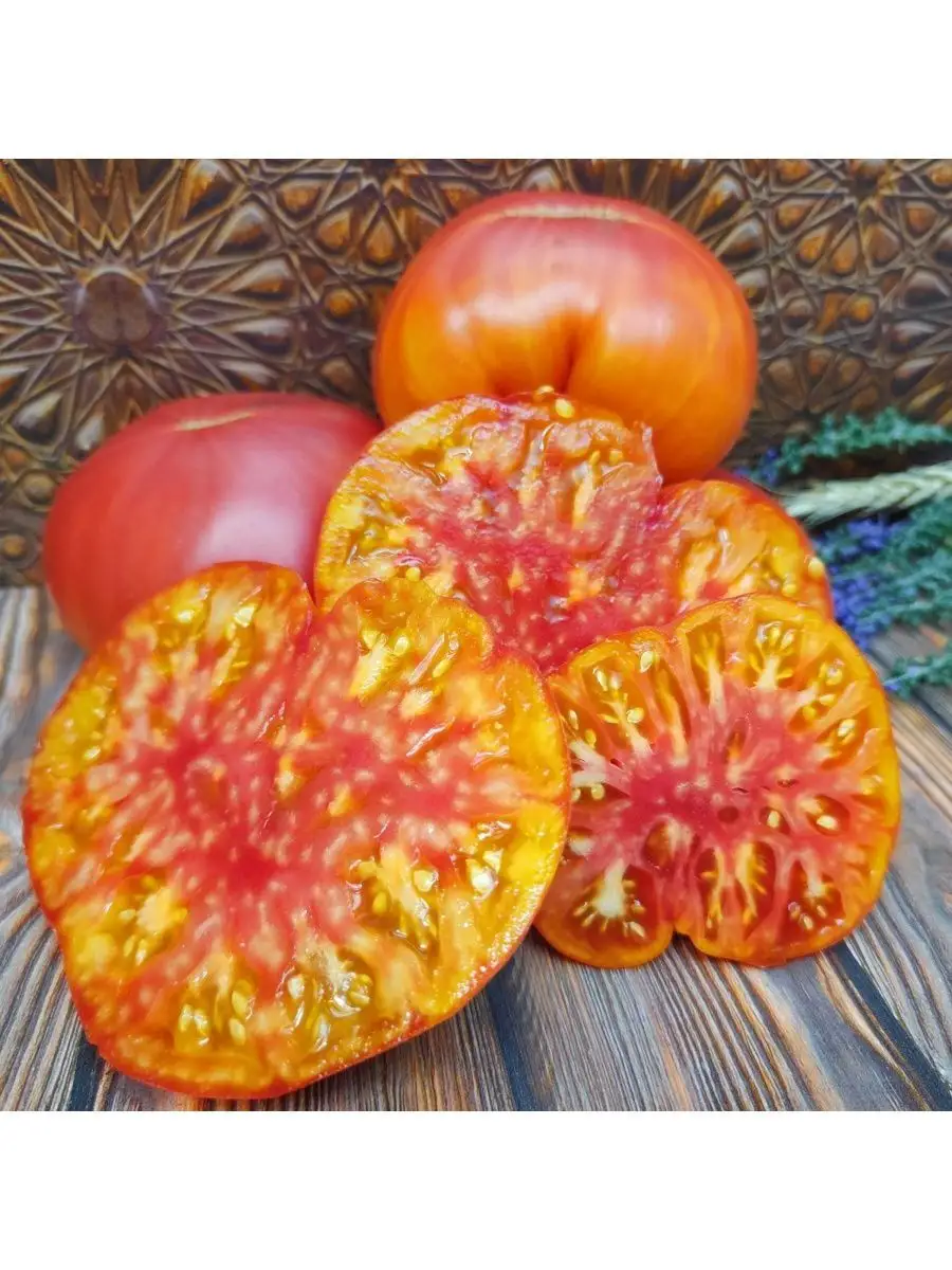 В менее освещенных частях кисти полосы могут быть бледнее или немногочисленнее. Эта вариабельность делает каждый томат уникальным. На разрезе мякоть часто неоднородна: желтая основа может быть пронизана красными прожилками, создавая эффект мраморности, что напрямую связано с описанной внешней окраской.