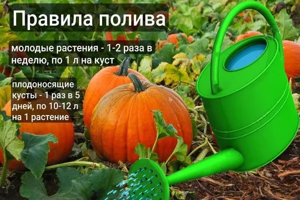 - Первые полмесяца тыкву поливают примерно 1-2 раза в неделю. Норма полива — 1 л на одно растение.