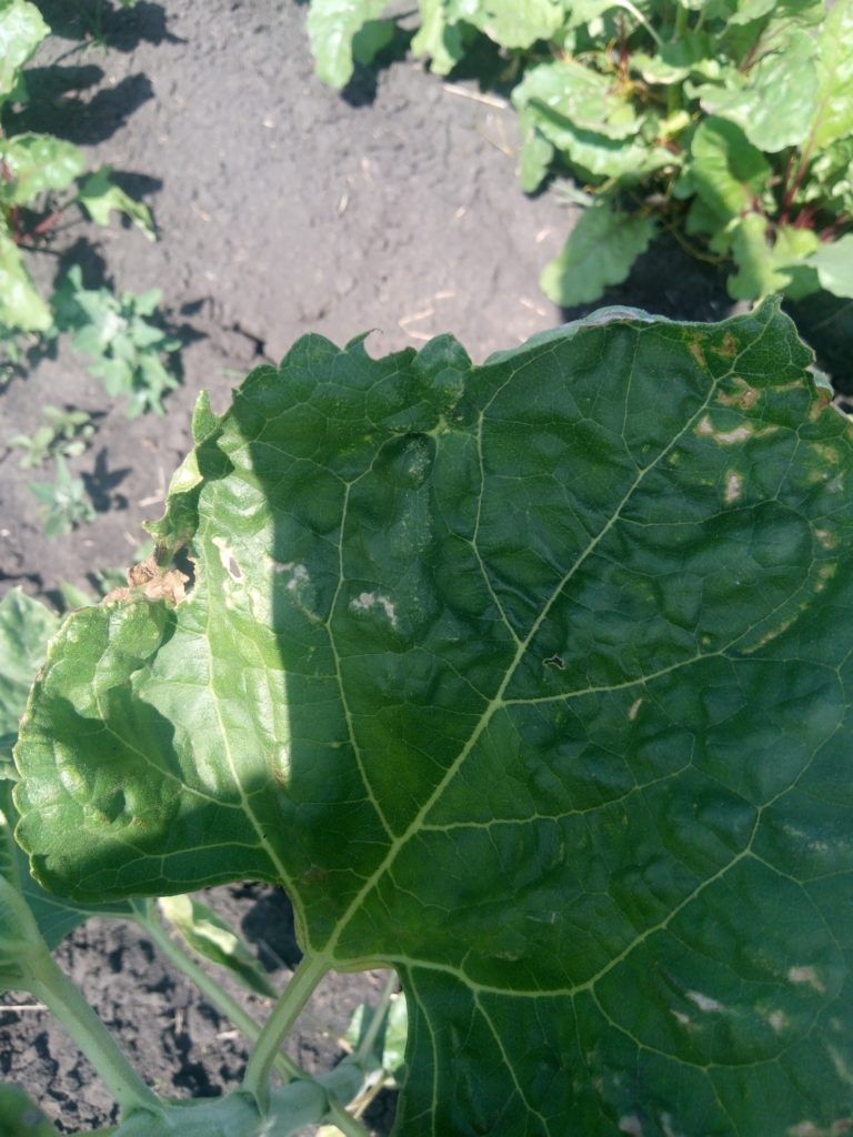 Обнаружили в двух рядах на огороде вот такие листья. И кочаны не образуются, хотя на других капустинах они уже неплохих размеров. Что это и как побороть?