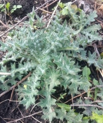 И ещё мы нашли вот такие кустики колючие. Понимаем, что сорняк, но может какой лечебный? Мы совсем недавно купили дачу, а живём всю жизнь в городе, поэтому совершенно не понимаем, что оставлять на участке, а что искоренять.