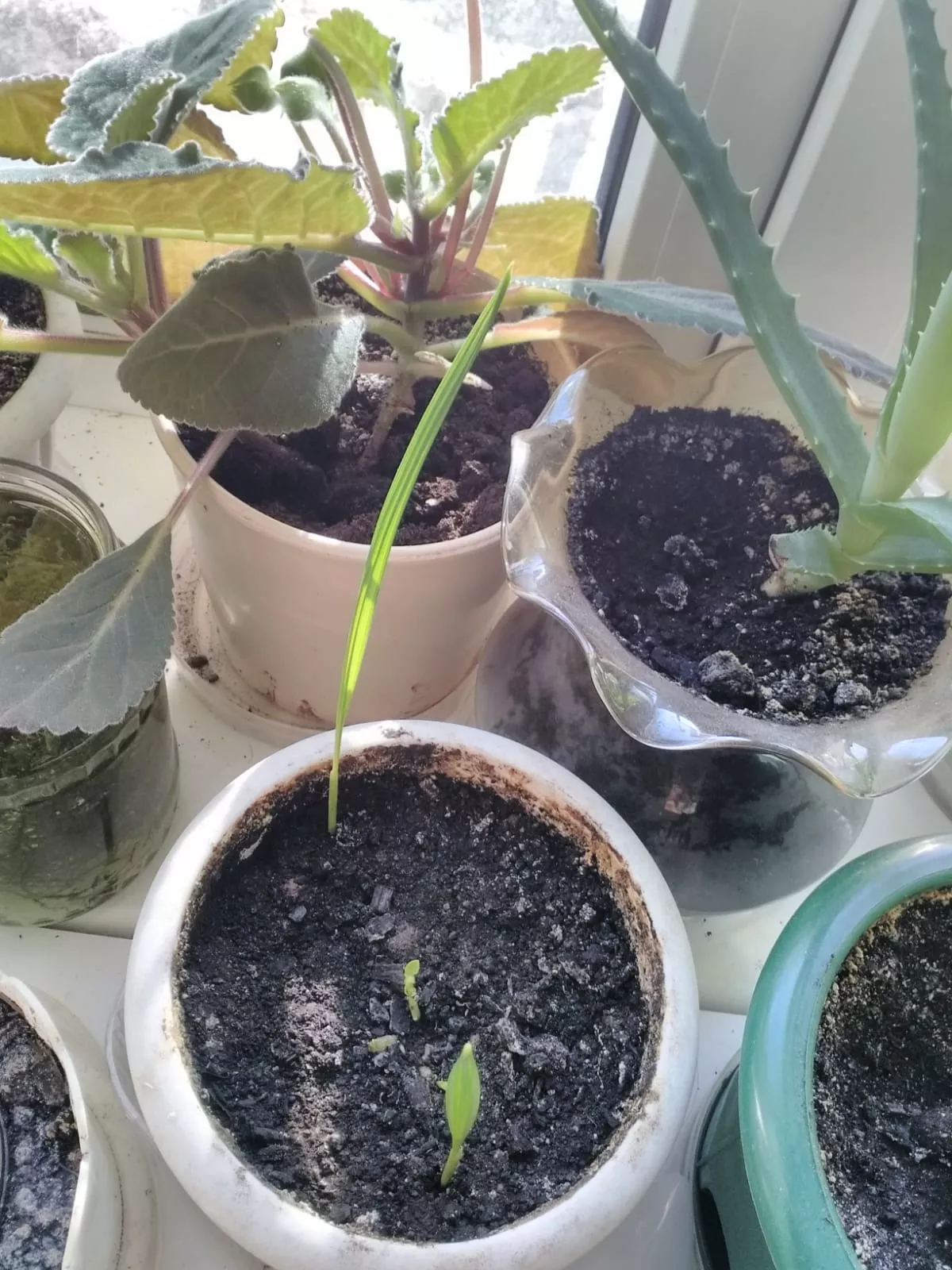 Может это финик? Чем- то напоминает всходы финика.