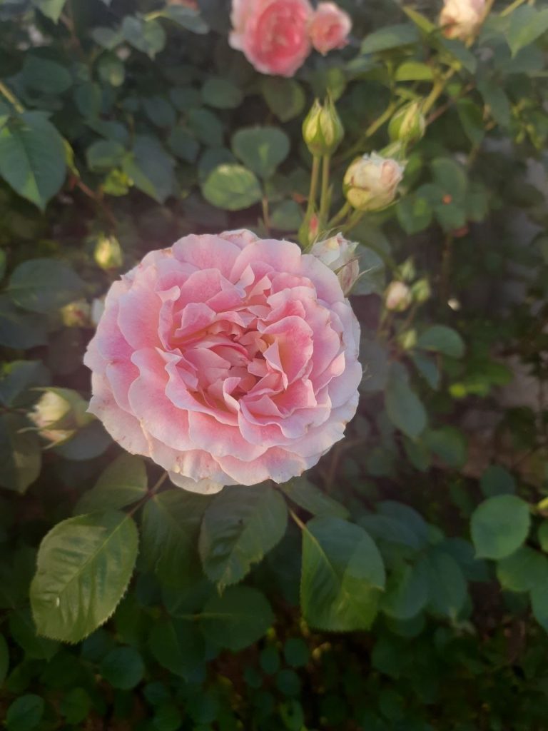 У нас растёт куст вот такой прекрасной розовой розы, но сорт не знаем.