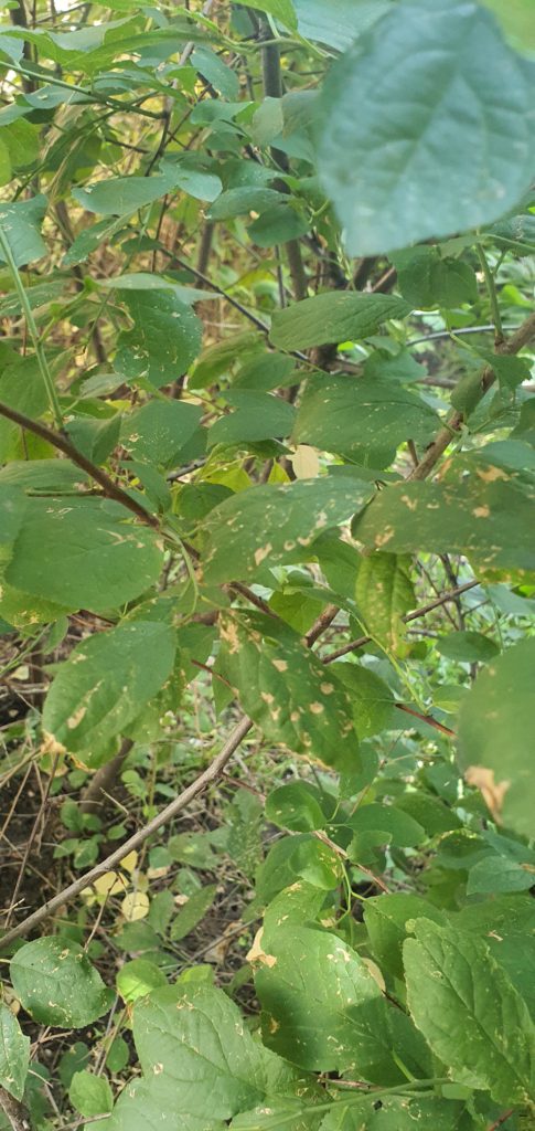 На участке в черте города растут вишня и сливы. В этом году на листьях заметны ржавые пятна и отверстия в листьях, вредителей при этом под карманным микроскопом никаких не видно. Листья покрываются пятнами, желтеют и опадают. Больше всего выражено на сливе, на вишне намного меньше.